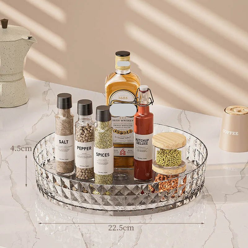 Easy Glide - Rotates 360°:The Bottom Is Anti Slip and Stable, And The Rotary Table Rotates Without Slipping, Allowing You To Easily Access Seasoning Bottles, Fruits and Vegetables, Or Cosmetics and Skincare Products at Any angle.